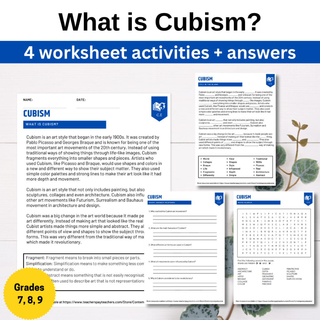 Geometric Shapes: Objects are broken down into geometric shapes such as cubes, spheres, and cones. This abstraction emphasizes the underlying structure of the subject and departs from realistic representation.